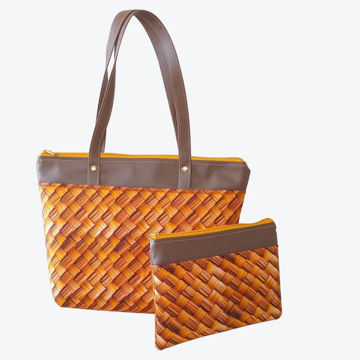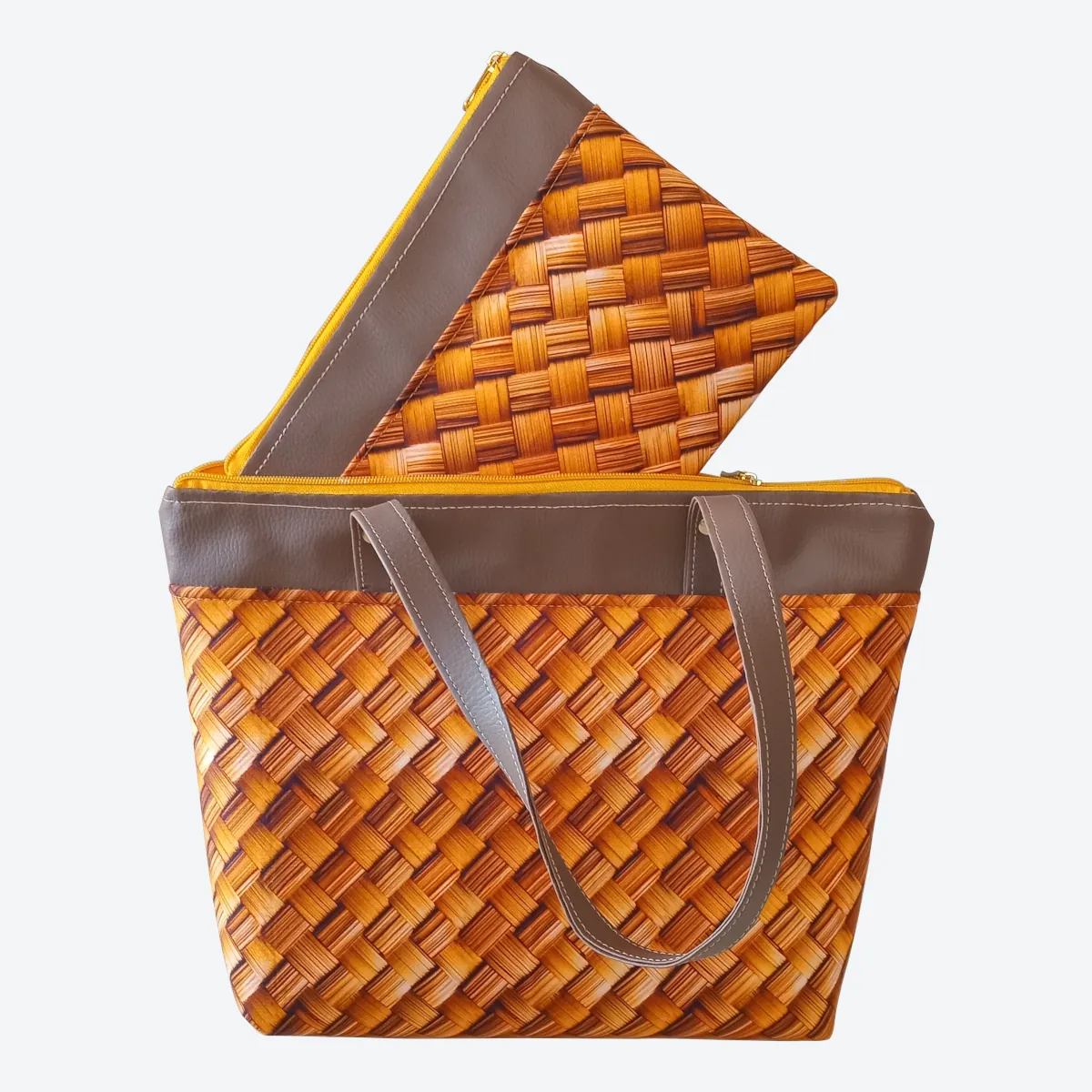 Sobre esta bolsa tote, temos que o padrão vime ou o padrão cordas, são uma impressão 3D sobre o tecido tricoline, realizado diretamente na indústria têxtil e fornecido para NKoisas. A qualidade da impressão e do tecido garantem que você poderá utilizar sua bolsa tote por muito tempo. Outros materiais sintéticos são utilizados na composição do design, assim como a alça e a faixa de destaque. Tudo muito bem integrado, conferindo mais elegância e permitindo que você faça ótimas combinações com o seu look.