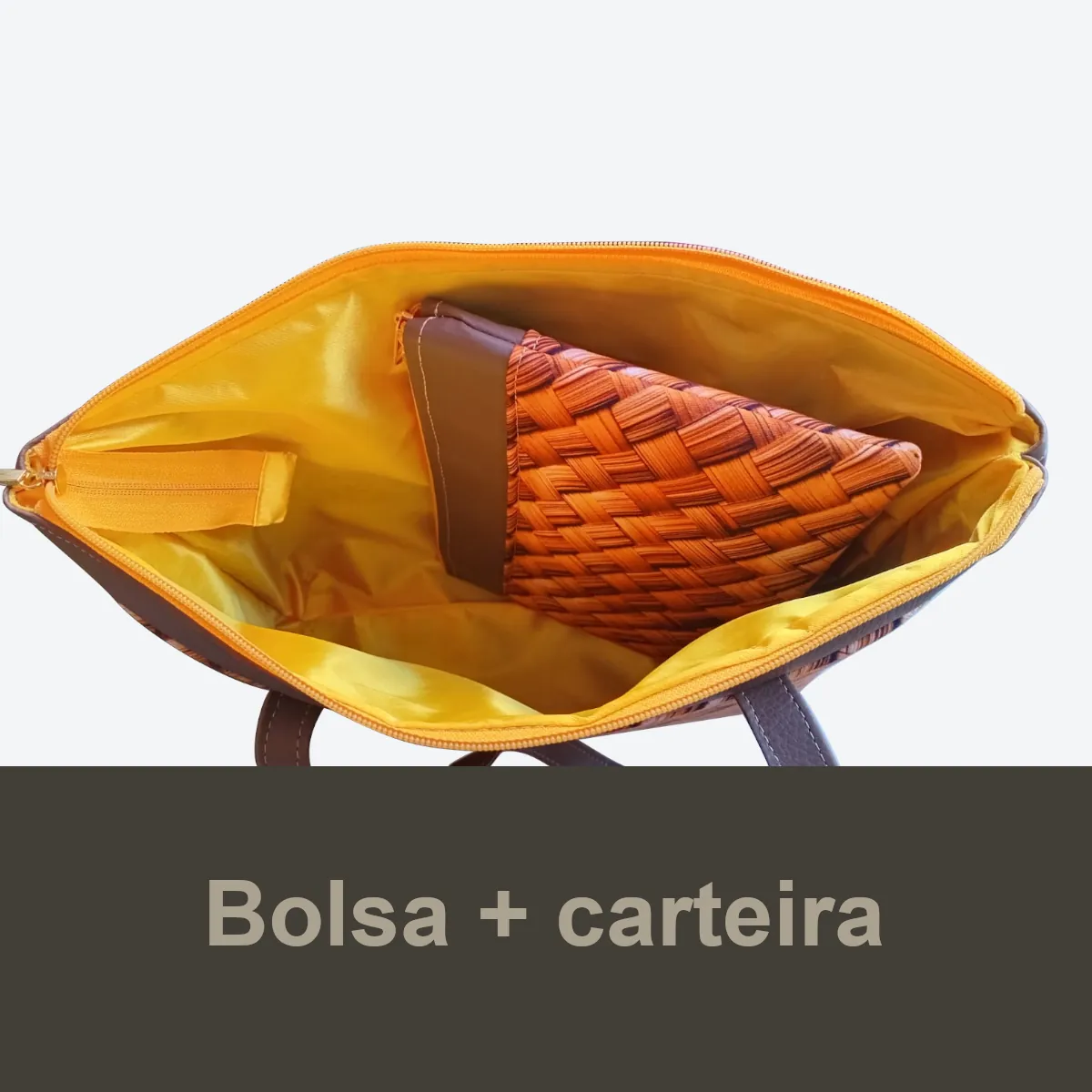Ainda, acompanha uma bolsa clutch nos mesmo padrões da bolsa tote, para que você possa manter a bolsa bem organizada e seus pertences menores não fiquem espalhados pela bolsa. Ou ainda, você pode utilizar esta bolsa clutch independente. Imagine que você pode deixar a bolsa tote no trabalho e sair para almoçar levando somente a bolsa clutch, com seus cartões de crédito, dinheiro, documentos, celular e chaves.Isto deixa as coisas muito mais práticas.