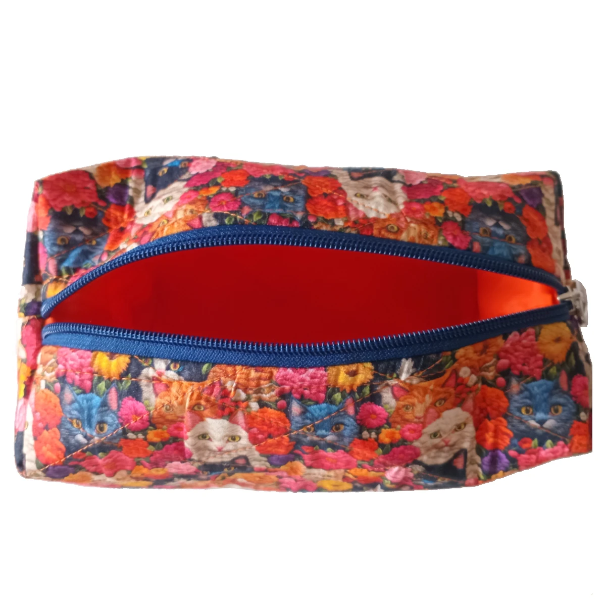 Design Único e Vibrante: O grande diferencial desta necessaire é seu design alegre e marcante. O material externo é o renomado tecido tricoline, conhecido por sua maciez e durabilidade. O charme fica por conta da estampa exclusiva, impressa em alta definição (com aspecto 3D), que apresenta uma divertida e colorida coleção de imagens de gatos. Essa estampa de gatos coloridos e brincalhões confere à sua necessaire feminina um visual único e descontraído, transformando um item de organização em um verdadeiro acessório de moda. Diga adeus ao tédio e leve a energia da brincadeira felina para onde você for!