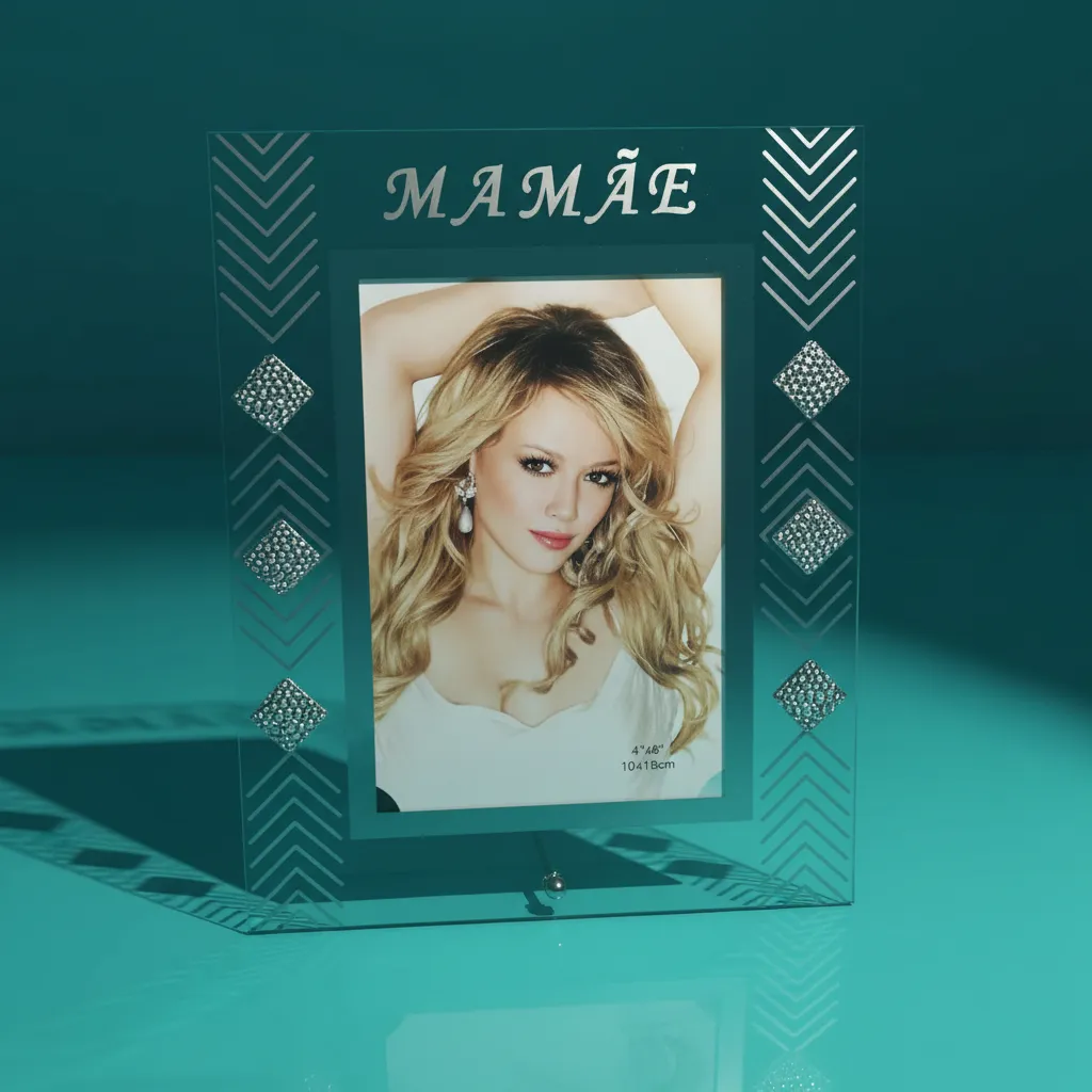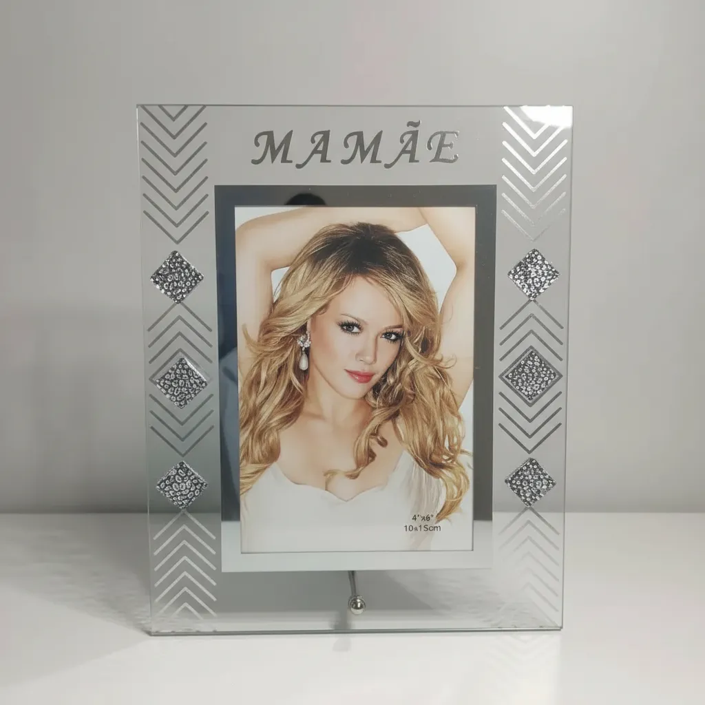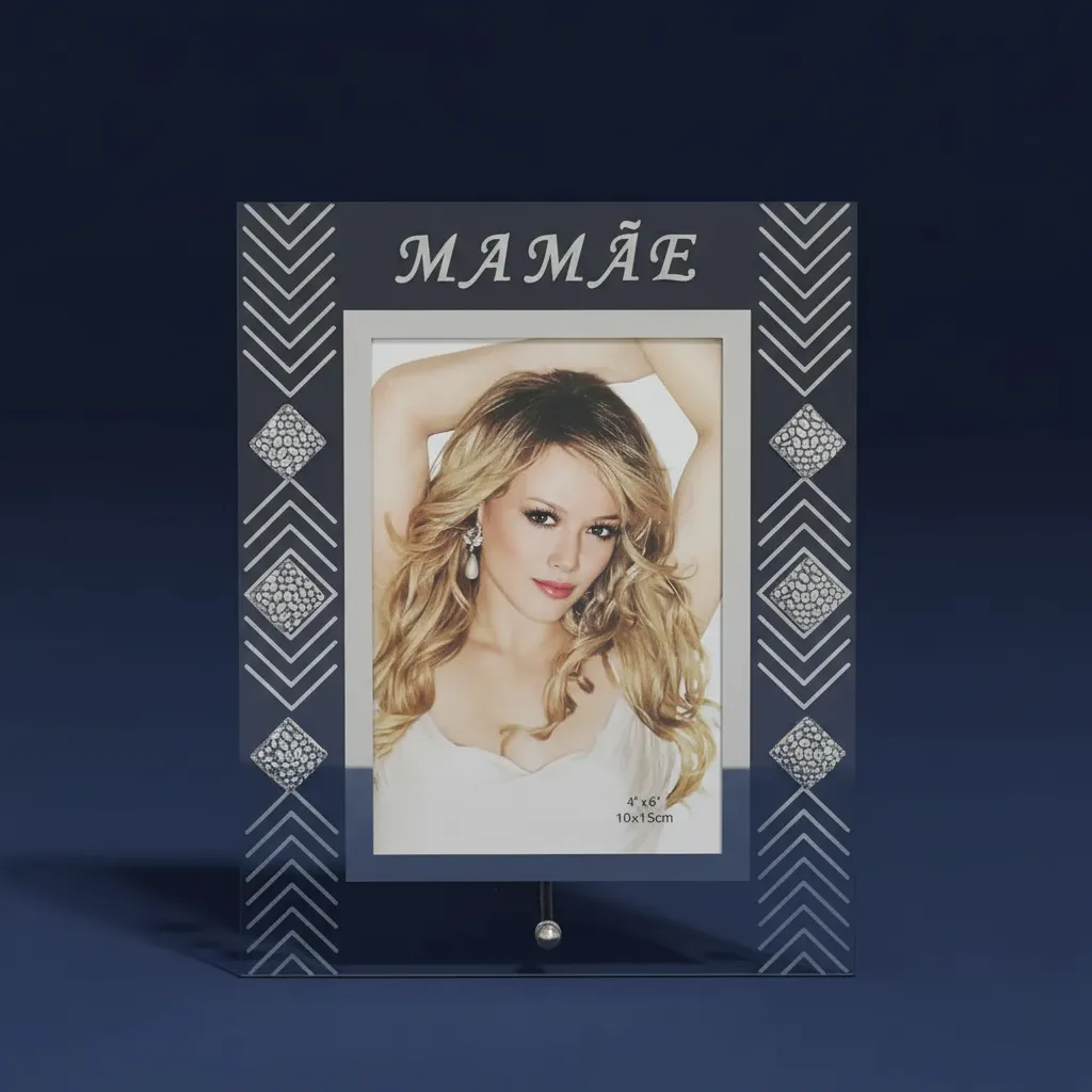 Produzido em vidro premium, o porta retrato oferece uma leveza visual única. A transparência do material permite que a foto seja a protagonista, enquanto os detalhes geométricos e as aplicações brilhantes nas laterais adicionam um toque de luxo que valoriza qualquer ambiente.